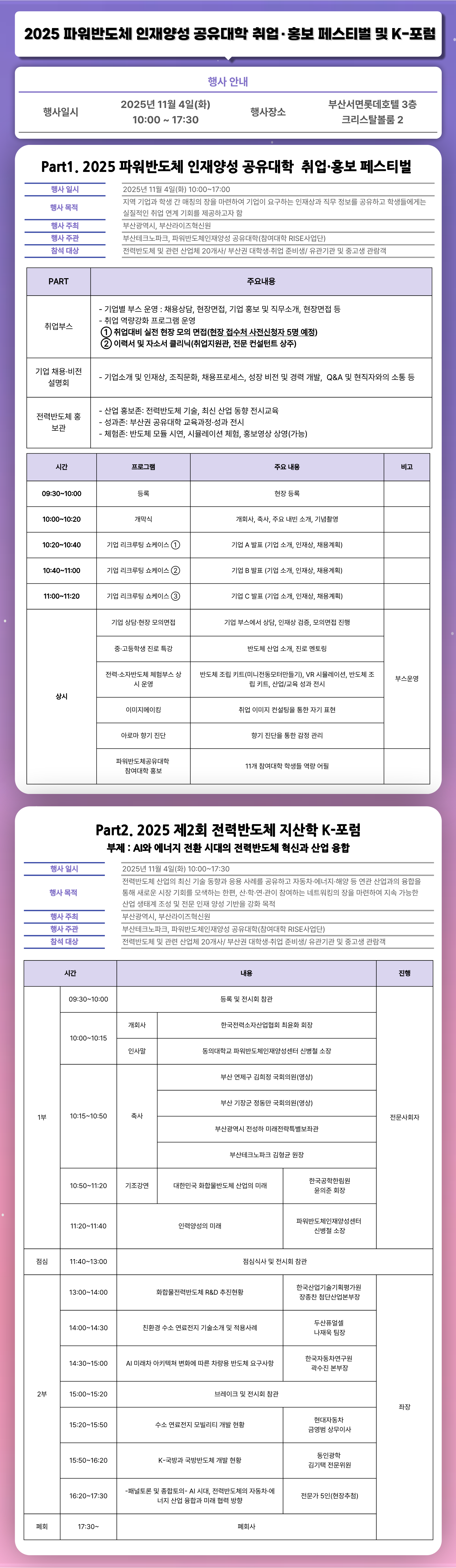 | 2025 파워반도체 인재양성 공유대학 취업·홍보 페스티벌 및 K-포럼 안내 | |||