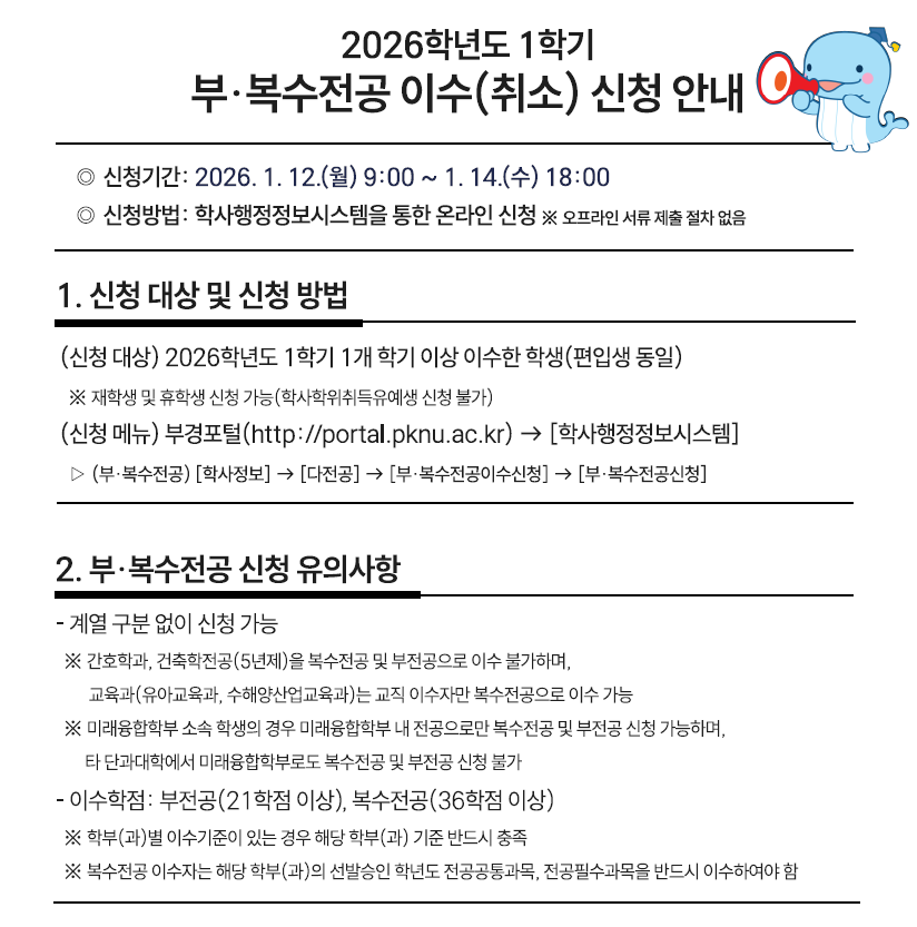 2026학년도 1학기 다전공(부,복수전공,마이크로전공) 등 이수 신청 안내