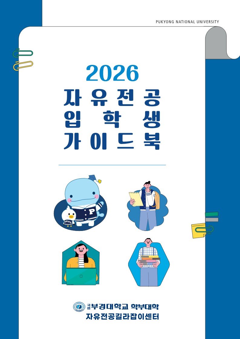 "2026학년도 자유전공 입학생 가이드북"을 안내하오니 공과대학자유전공학부 대학생활에 적극 활용 바랍니다. 수정일: 2026. 1. 13. 붙임 1. 2026학년도 자유전공 입학생 가이드북(2026.1.13.) PDF 1부. 2. 링크 주소 : https://college.pknu.ac.kr/college/7037 1부. 끝.